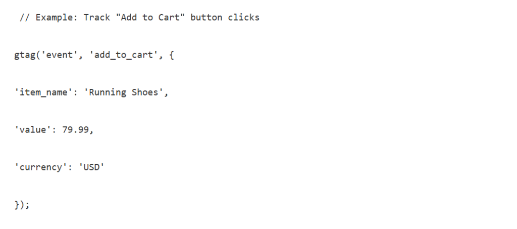 Example: Track ‘add to cart’ clicks → GA4 records the event when someone presses the button.