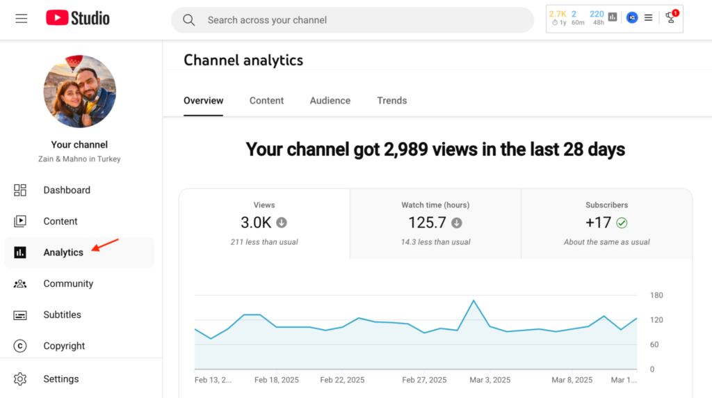 YouTube Studio gives you insights about your video content what’s working and what’s not. Check: